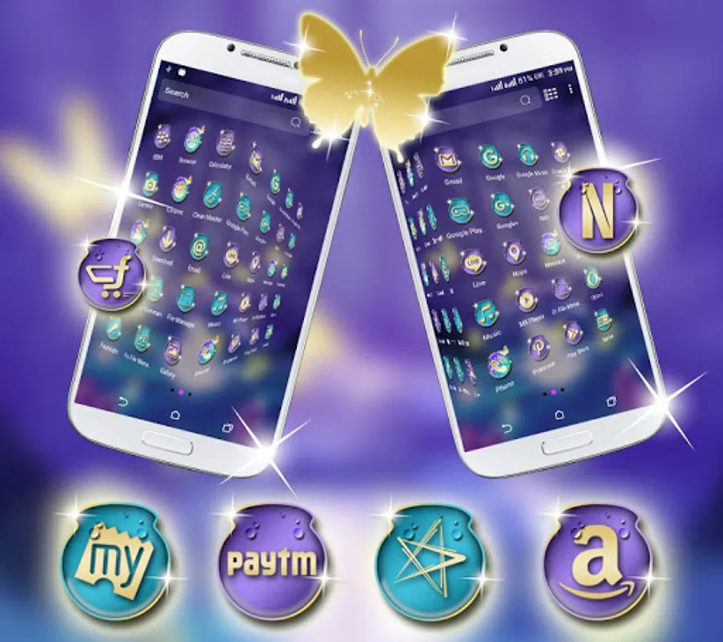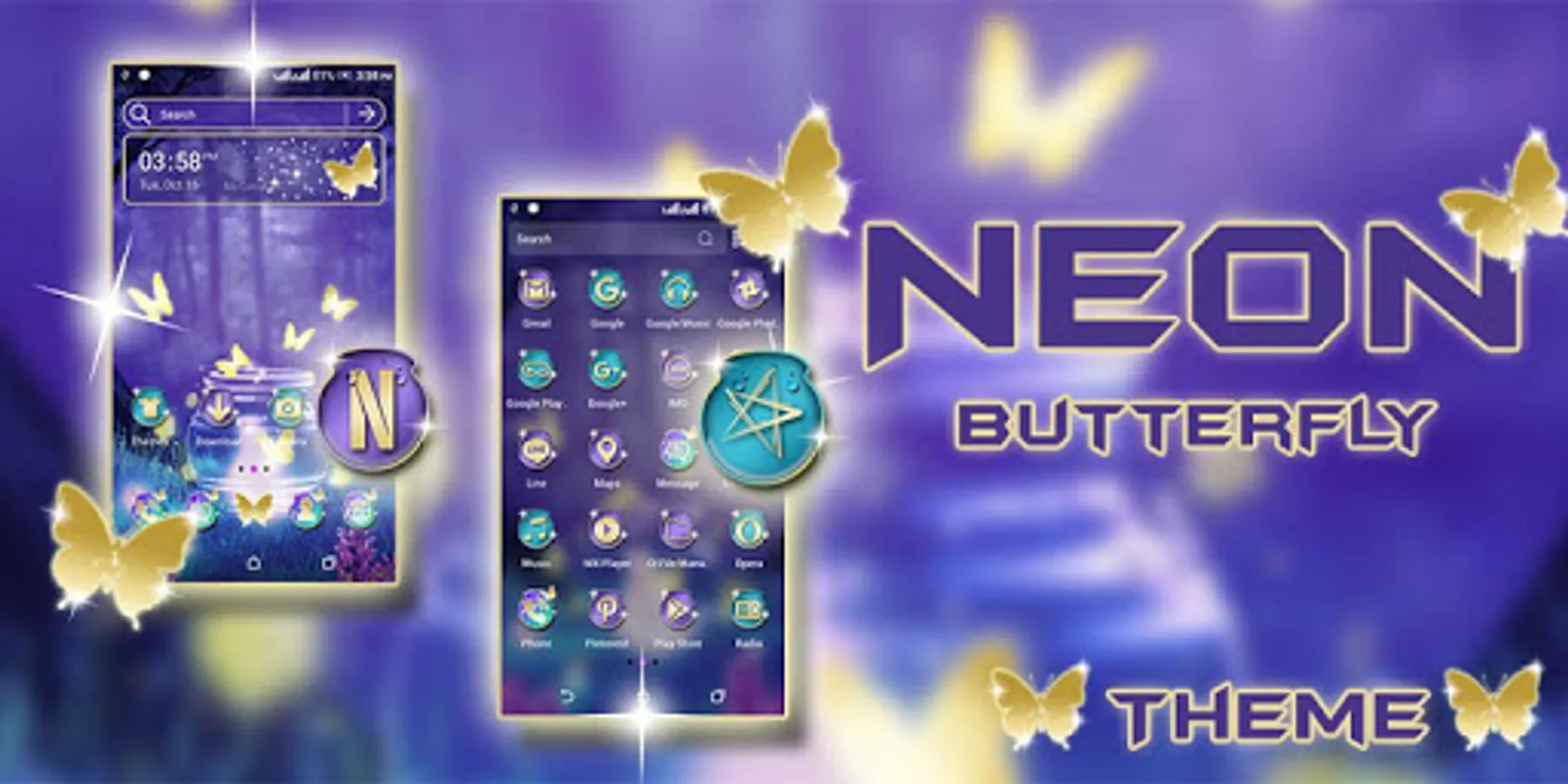 • Neon Butterfly Theme included many HD customized Icons of popular apps, social app, System app icons.