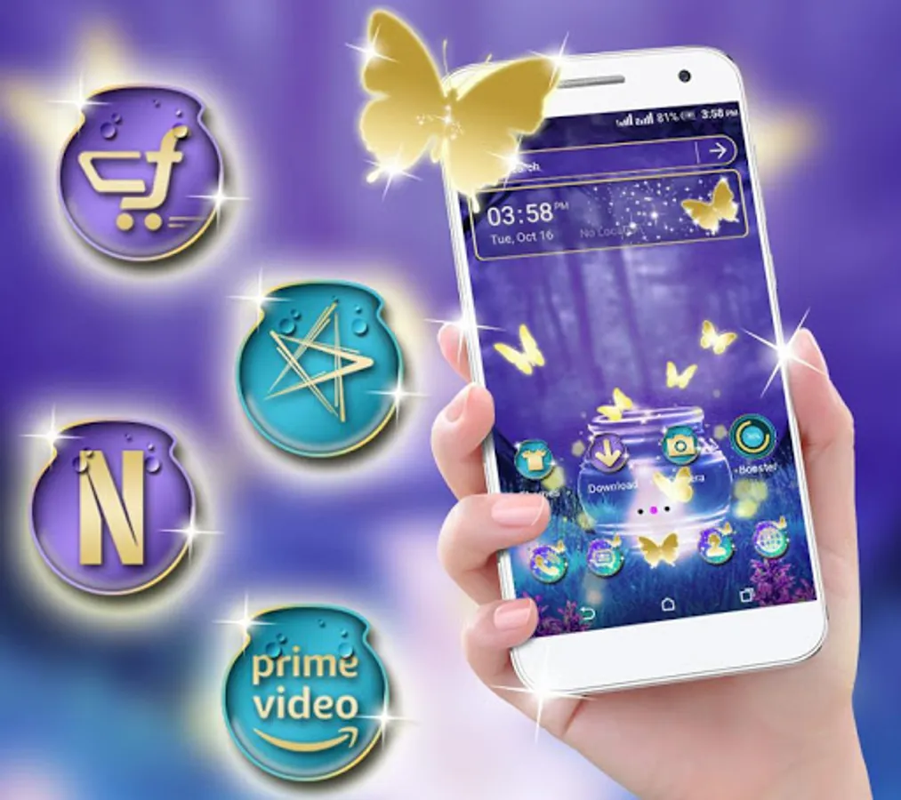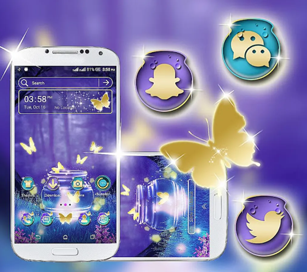 Apply the Neon Butterfly Launcher Theme now, to make your phone organized. The original app icons, clock and weather theme of your phone will be replaced by the Neon Butterfly Launcher Theme.