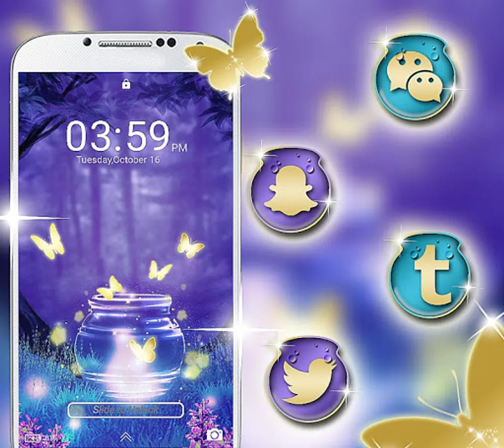 • Decorate your Lock screen with Neon Butterfly Theme Launcher