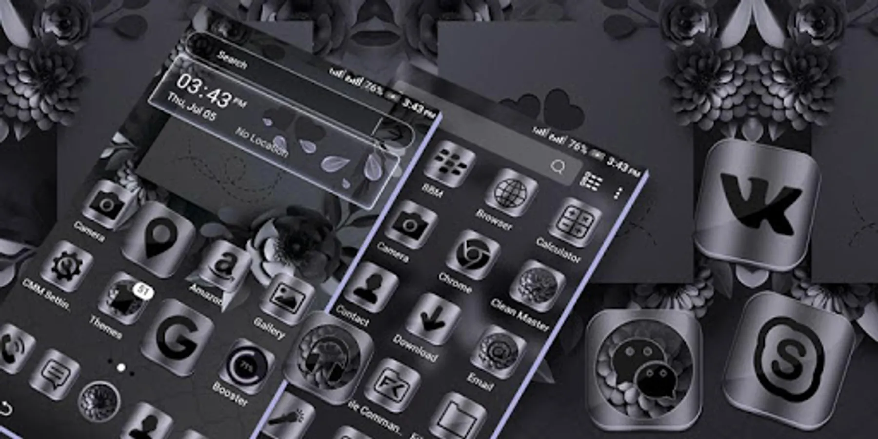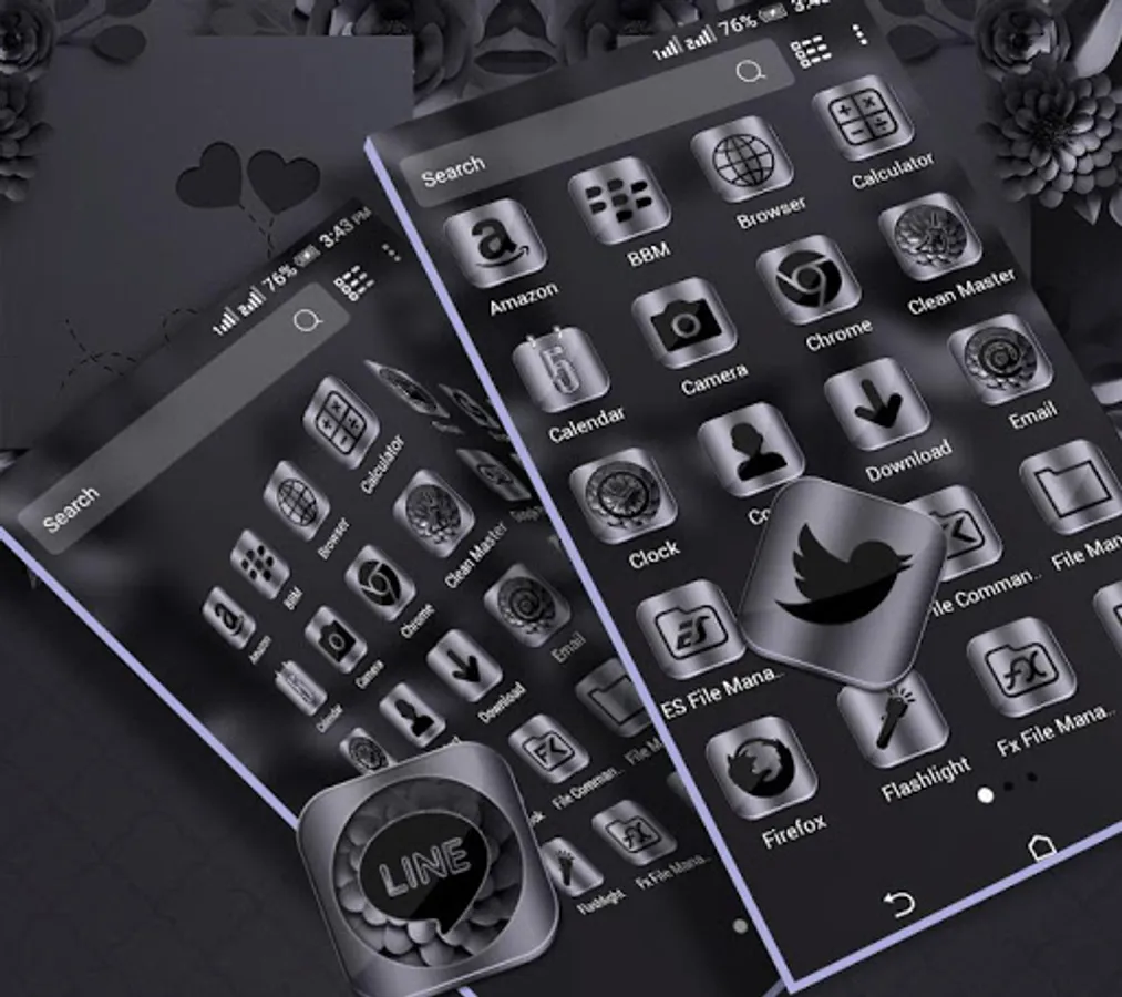 • Night Mode Theme included many HD customized Icons of popular apps, social app, System app icons.