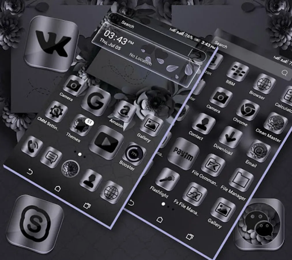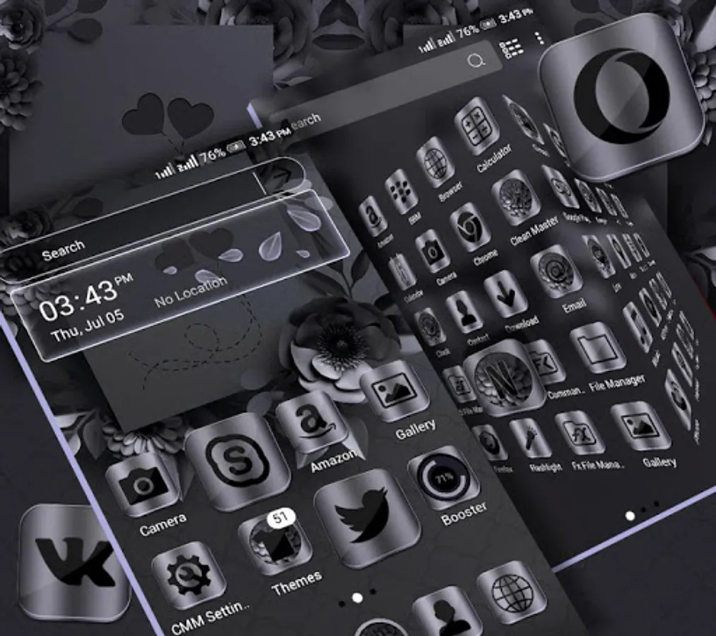 Apply the Night Mode Launcher Theme now, to make your phone organized. The original app icons, clock and weather theme of your phone will be replaced by the Night Mode Launcher Theme.