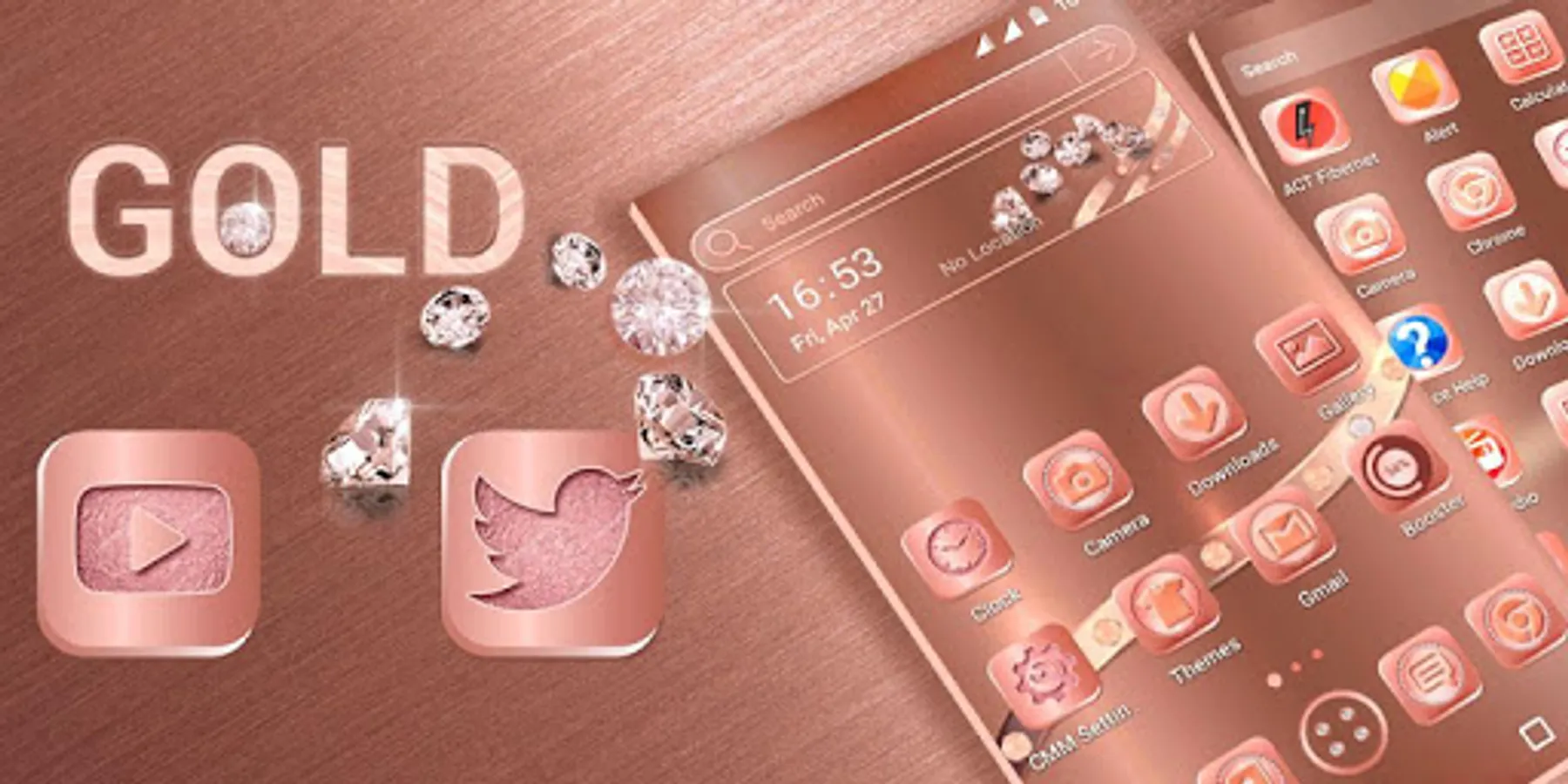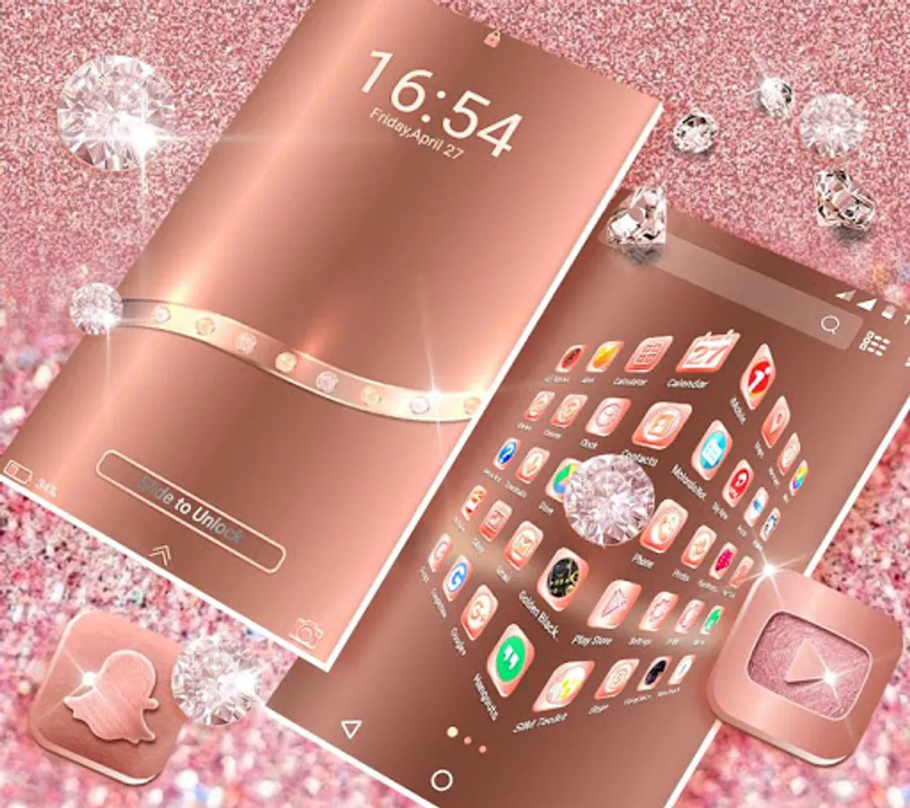 Come and download the Rose Gold Launcher Theme for free and make your Samsung, Huawei, HTC and any other brands of Android mobile stylish.