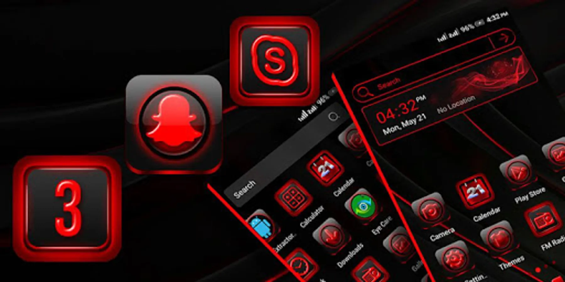 Come and download the Red Black Launcher Theme for free and make your Samsung, Huawei, HTC and any other brands of Android mobile stylish.