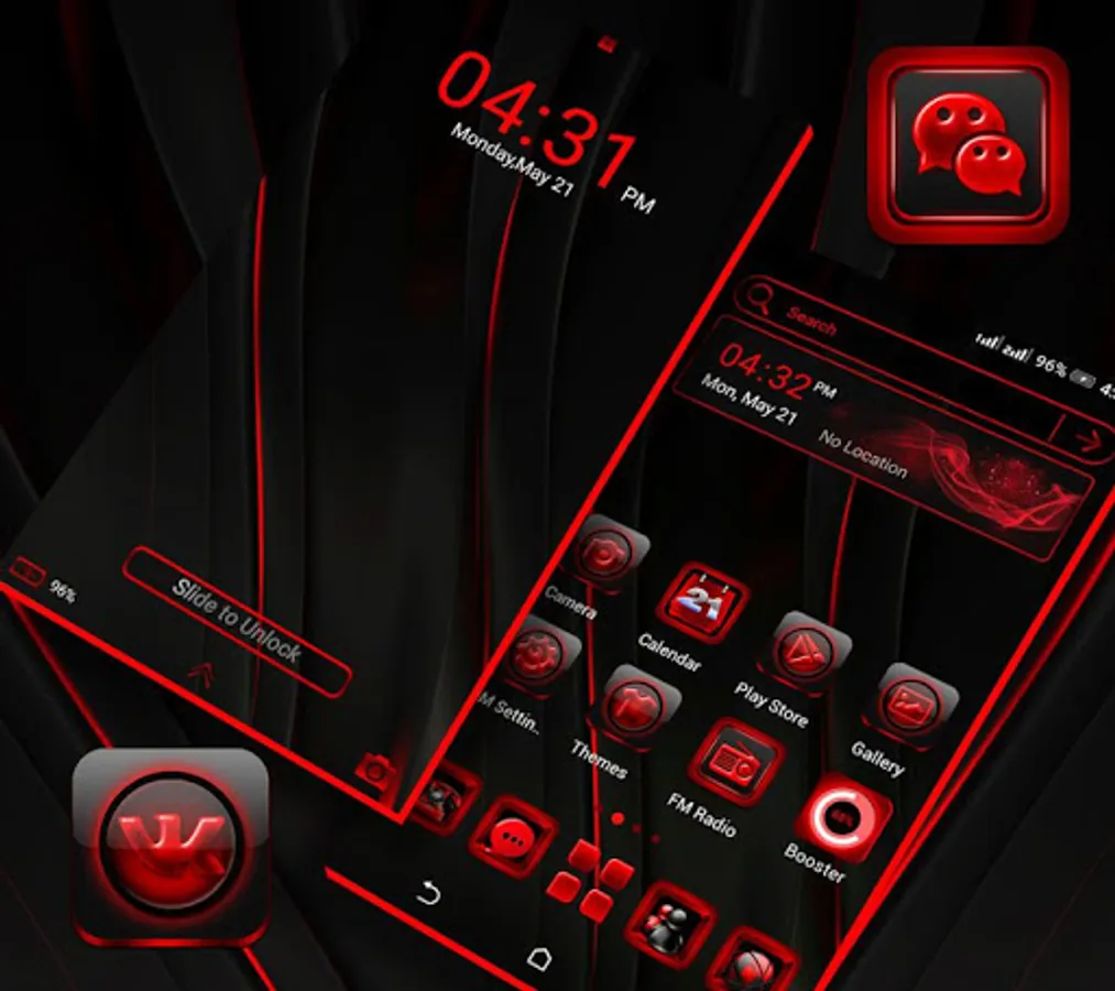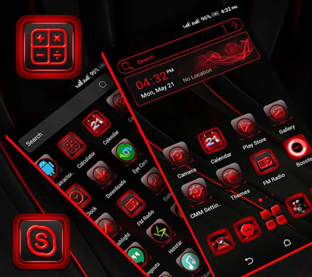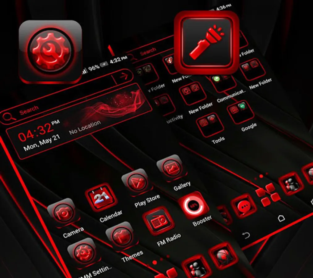 Apply the Red Black Launcher Theme now, to make your phone faster and organized. The original app icons, clock and weather theme of your phone will be replaced by the Red Black Launcher Theme.