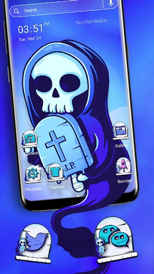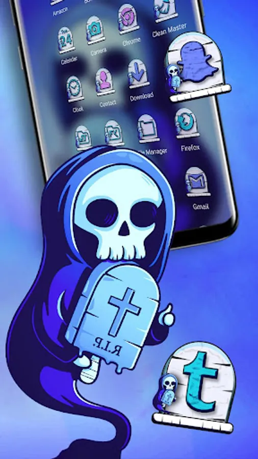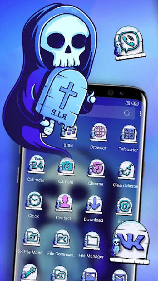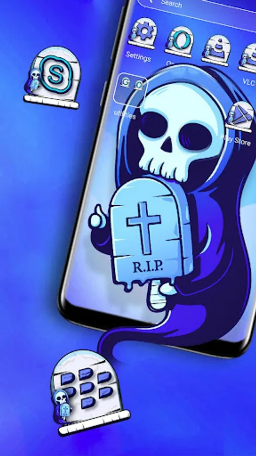 Skull RIP Theme Launcher Theme provides delicate app icons, wallpapers, folder and app drawer interface. Get it right now and have a completely new makeover of your Android smartphone.