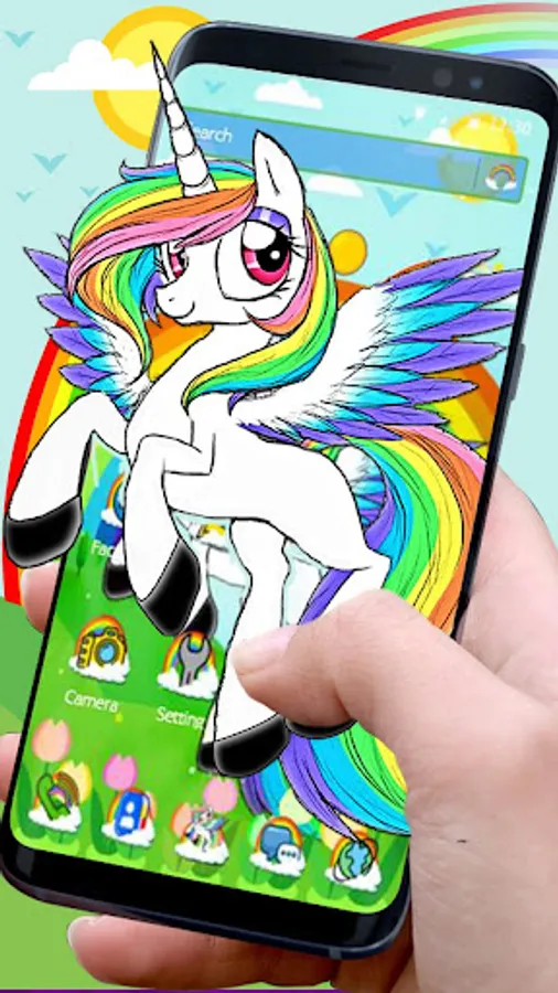Have you ever Rainbow Pony Theme of unicorn ? Rainbow Pony Theme has Rainbow Pony Theme unicorn live wallpaper and cartoon pink icon pack for you. Rainbow Pony Theme theme is so cute walking across rainbow bridge. Pink cartoon theme with rainbow unicorn from fairy story to fulfill your unicorn Rainbow Pony Theme. Little unicorn walks into your Rainbow Pony Theme and take you to the beautiful wonderland with colorful rainbow and cute unicorn friends. Get this Rainbow Pony Theme if you like pink cartoon and cute pony theme for android free.