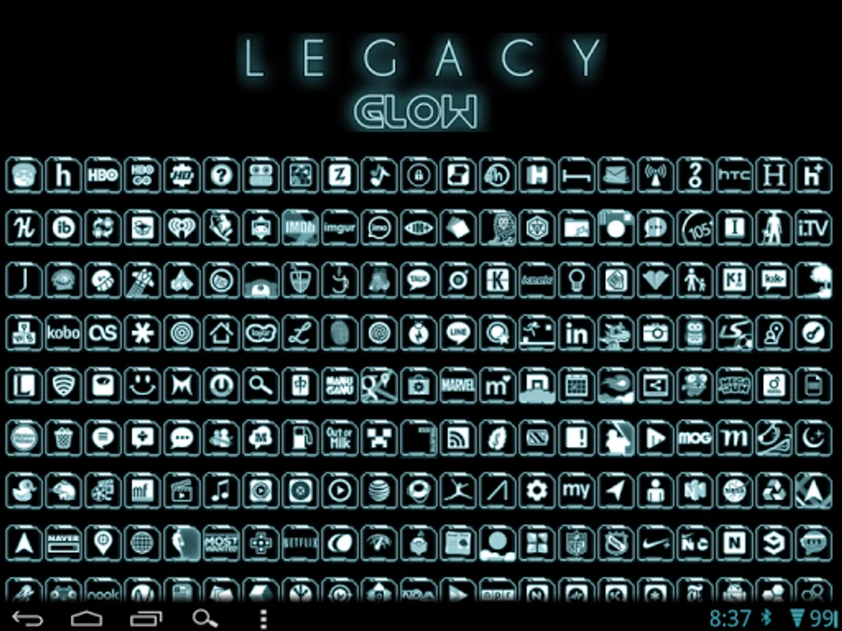 1. From anywhere within the launcher, PRESS MENU -> NOVA SETTINGS -> LOOK AND FEEL -> ICON THEME -> LEGACY GLOW