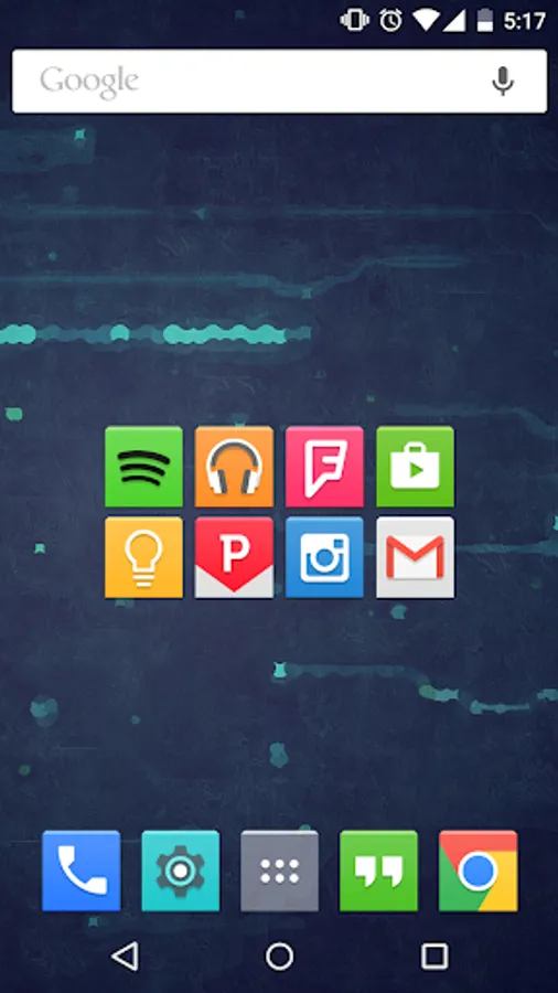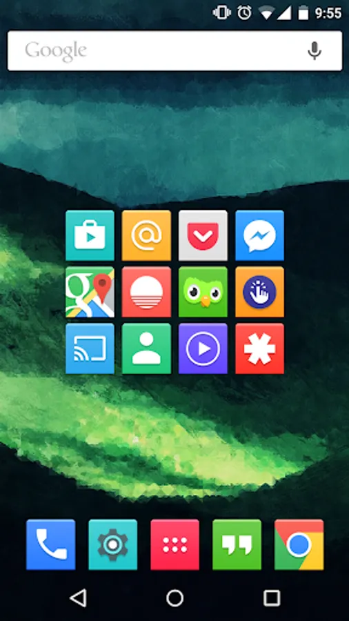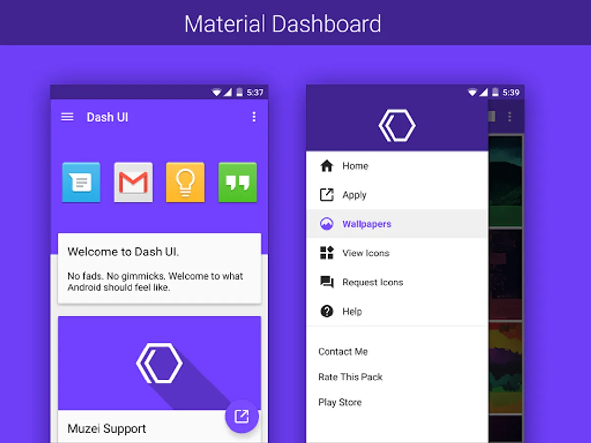 Dash UI. No fads. No gimmicks. Welcome to what Android should feel like. Each pixel is vibrant yet soft, with just enough depth that an icon should carry. It's a perfect fit for the current Android guidelines.