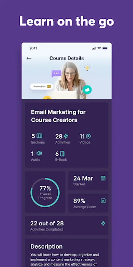 Watch your course videos, read ebooks and test your knowledge anytime, anywhere.