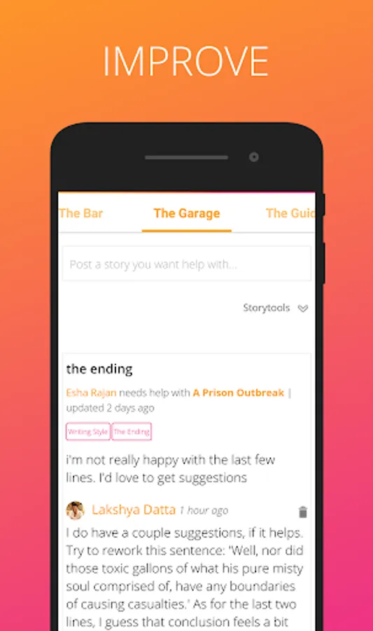 Discover and find helpful writing tips and guides to learn creative writing - Find the help that you need to refine and recognize your creative potential. Bring in those unfinished, not-quite-ready drafts, need-some-feedback ideas, been-in-draft-limbo stories - and let the community help you with constructive feedback and suggestions.