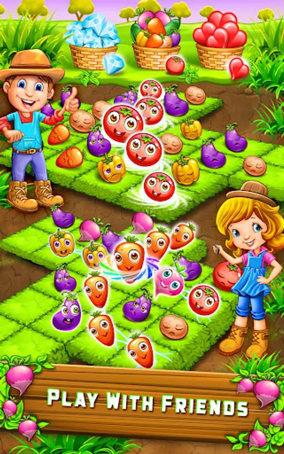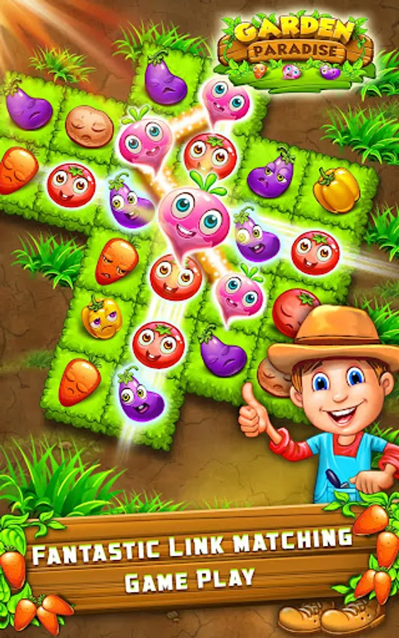Garden Paradise is different from other farm mania match 3 game with fantastic graphics and easy to addict yet challenging to master. Plunge and collect the sweet Tomatoes, Carrots, Brinjals, Beetroots, Pumpkins, Potatoes, Yellow Capsicums and many more vegetables in this green farm. Download now and start the fantastic harvest journey in the green farming paradise and be one of the best top heroes.