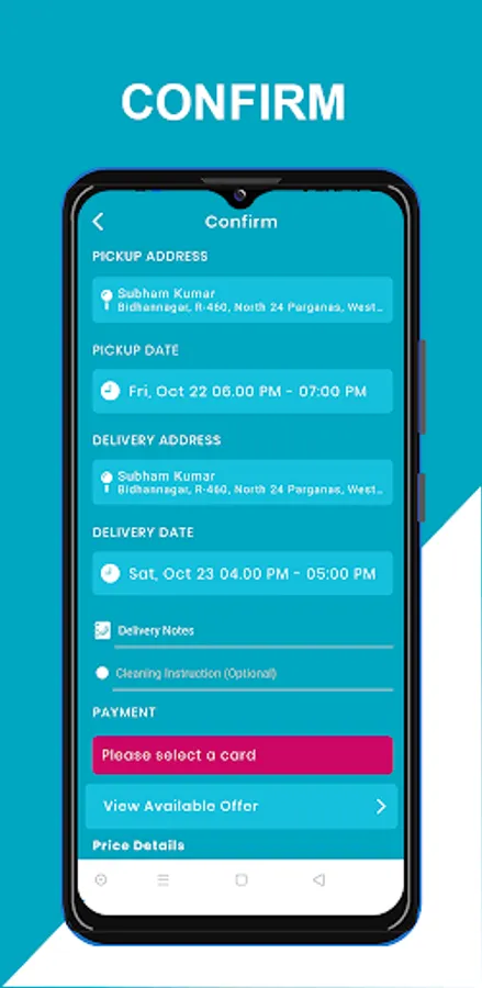 Book our service via our app or online and choose the items from our price list. Place an instant order and choose where you wish us to collect & deliver your laundry.