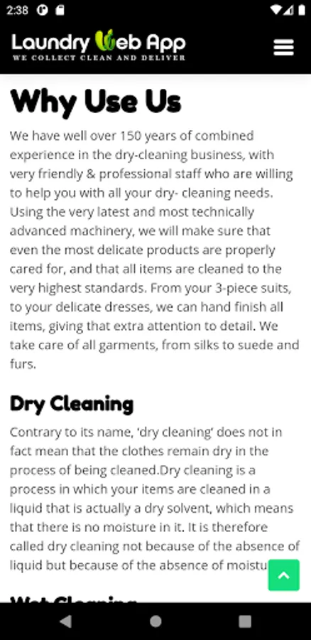 We collect all your laundry and dry cleaning from your home or work. We then provide a premium cleaning service. With easy to use app and prices clearly shown you know exactly what to expect.