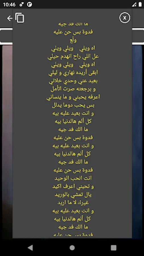 4. It contains the lyrics of the song Ah Yani with the feature of copying the words by pressing a button.