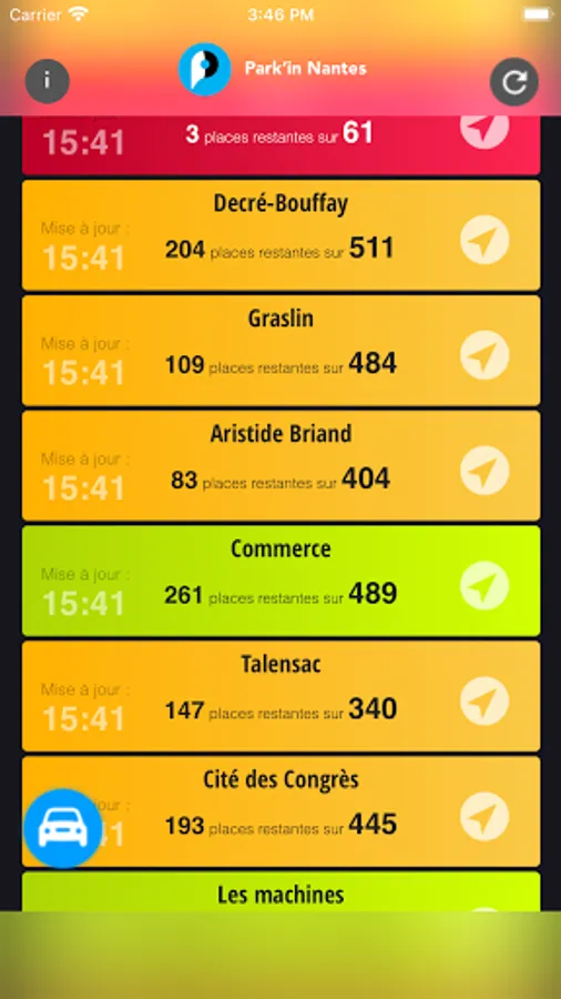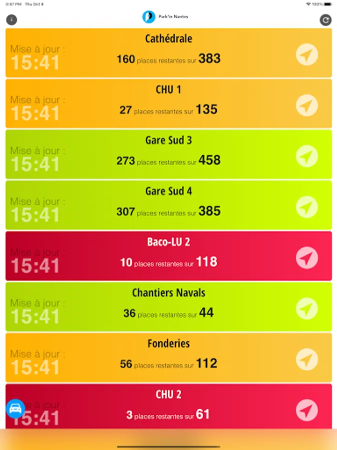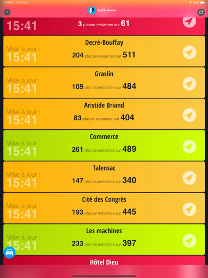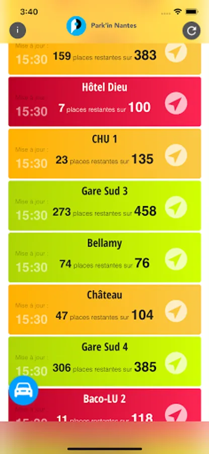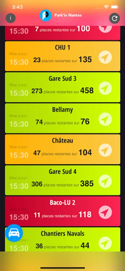 In a few seconds you can see * the availability of Nantes car parks on your phone: