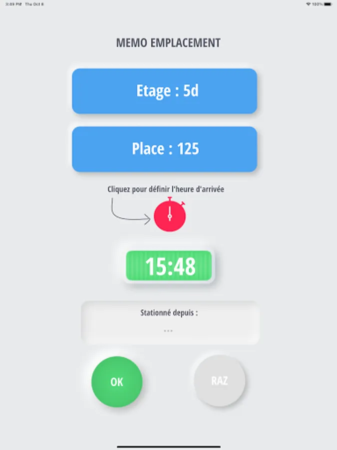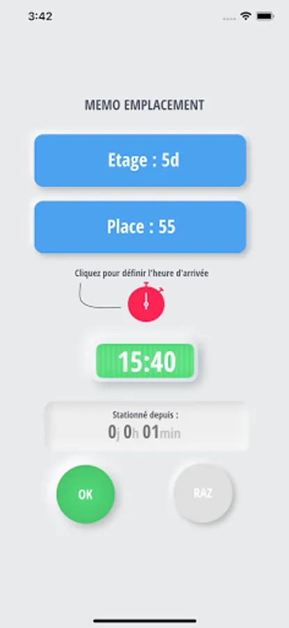 Memo location and duration of parking.