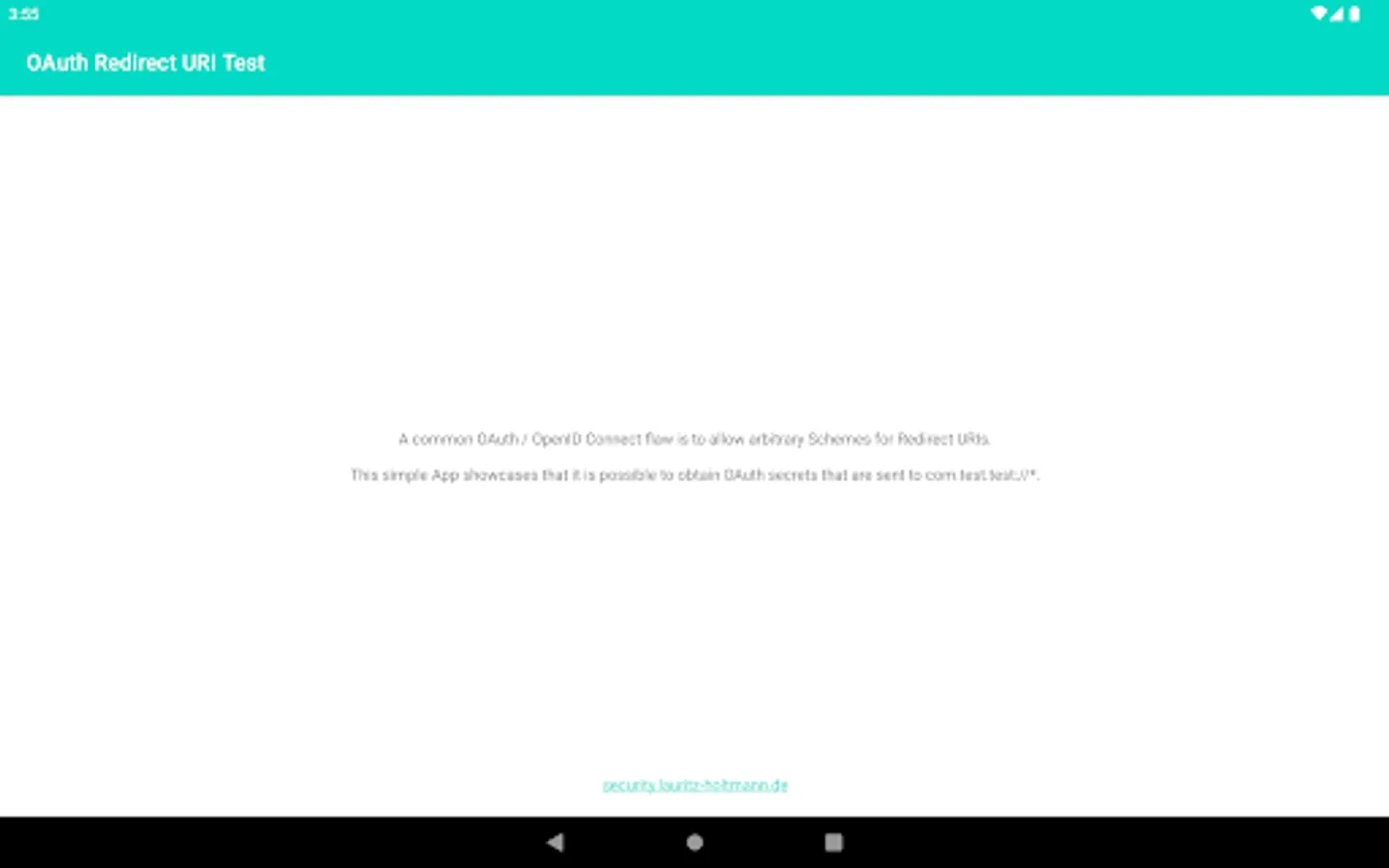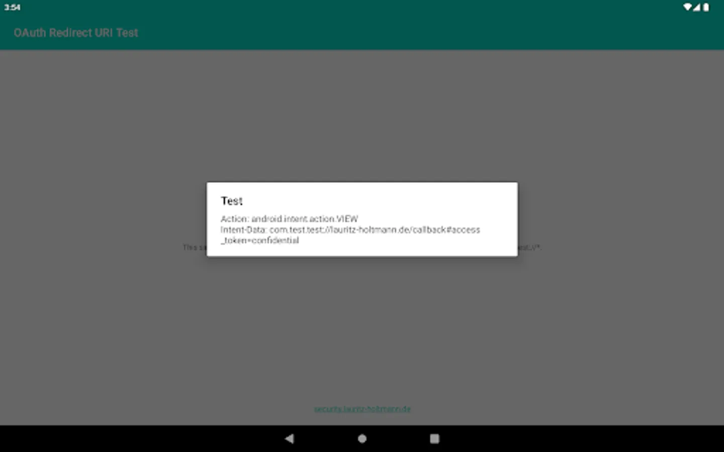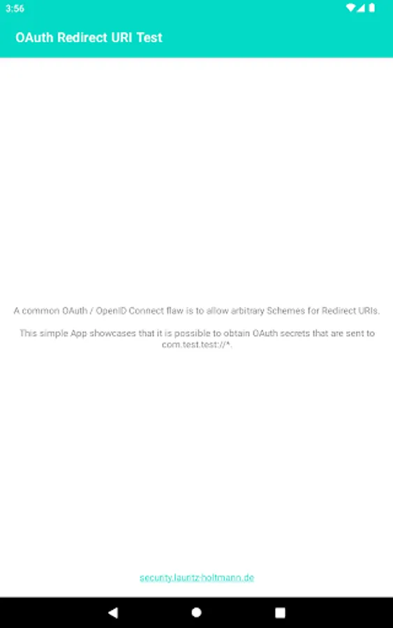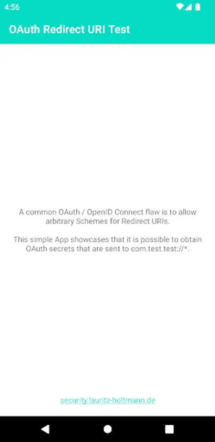 This app can be used to proof OAuth 2.0 / OpenID Connect (OIDC) 1.0 misconfigurations. It registers the custom scheme "com.test.test://" and alerts the obtained information on activation via an Intent.
