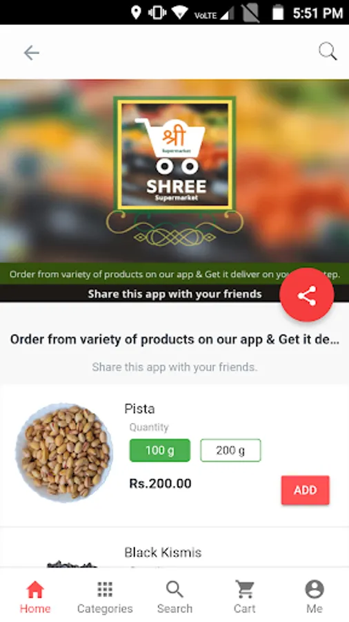 Shree supermarket is an online supermarket app for all your daily requirements. Online shopping now made easy with a wide range of groceries and home needs from our app.