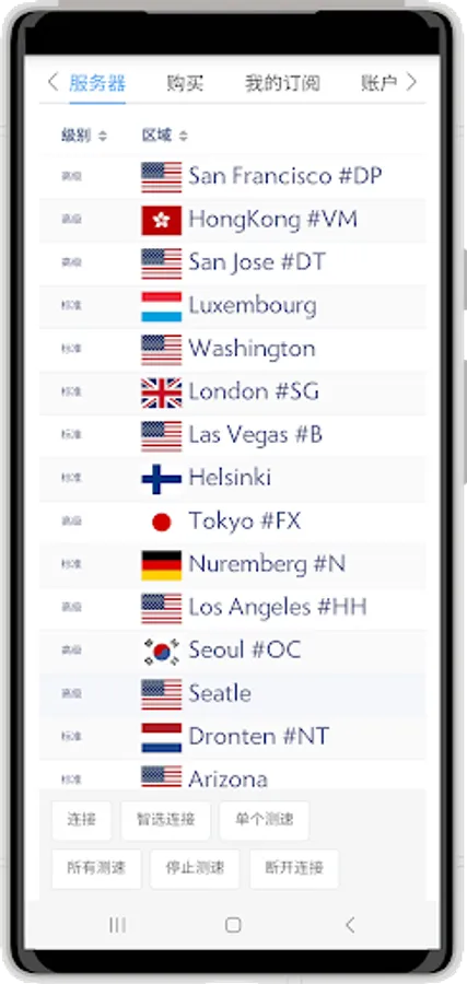 You can easily decide which is the best and fastest VPN server by using our speed test tool. Just tap the test button and all servers will be queued for testing. You can also sort all servers by download speed, stability, country or PING delay etc.
