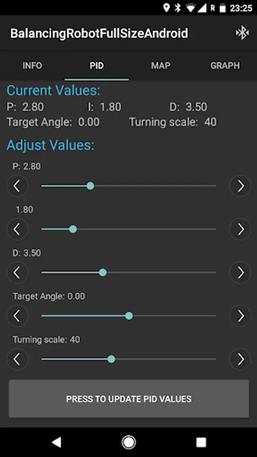 Source code for this app: https://github.com/Lauszus/BalancingRobotFullSizeAndroid.