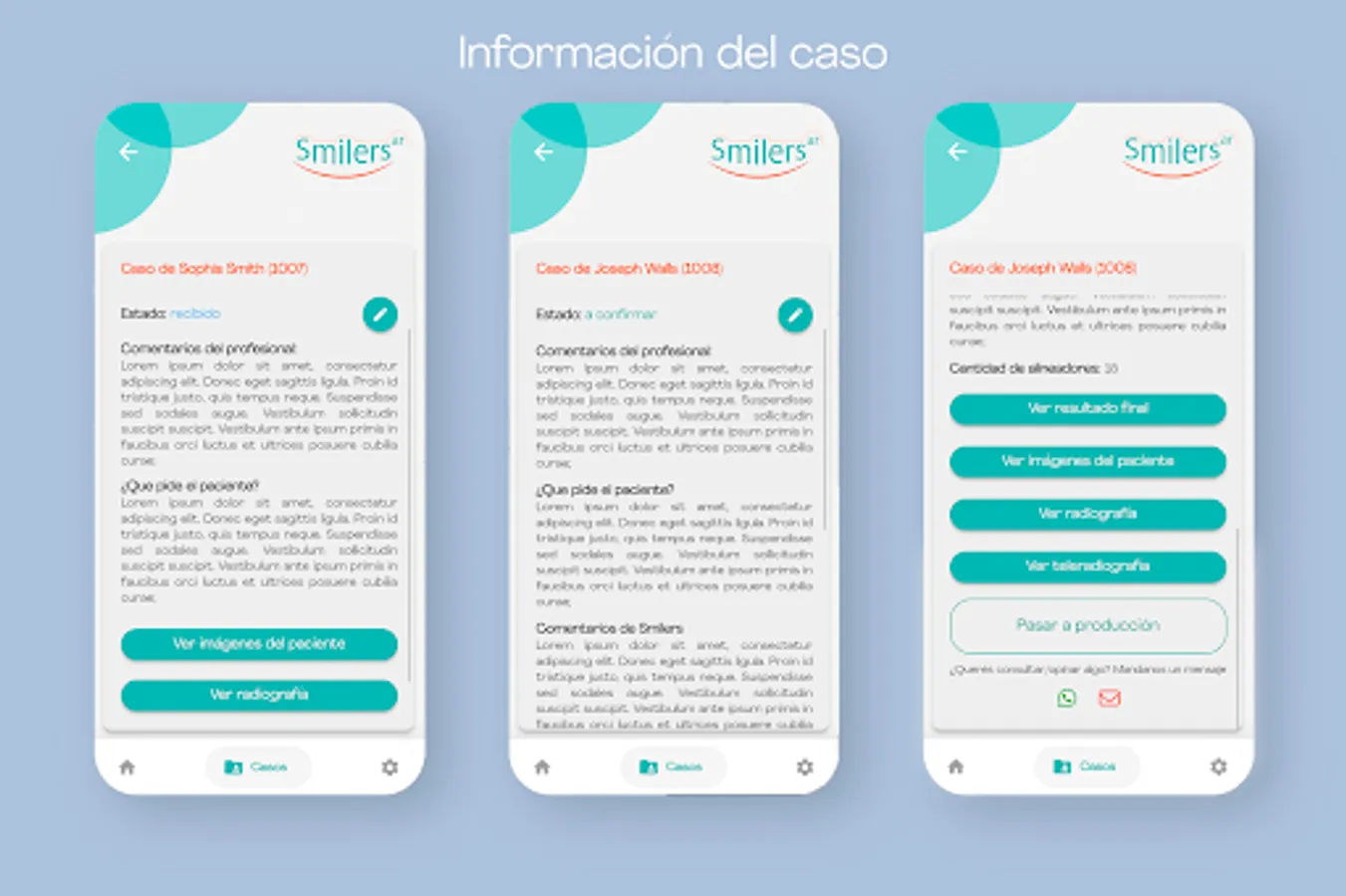Smilers is an application that organizes the production process of invisible aligners cases. With this application, designed for dentists, you will be able to record your patients' orthodontic cases for our professionals to analyze and you will receive details of the treatment to be performed (estimated treatment time, number of aligners, etc.).