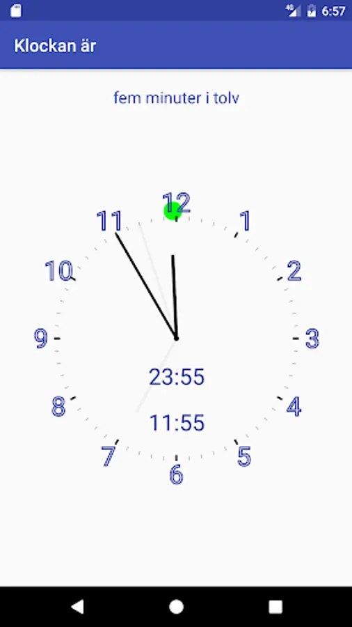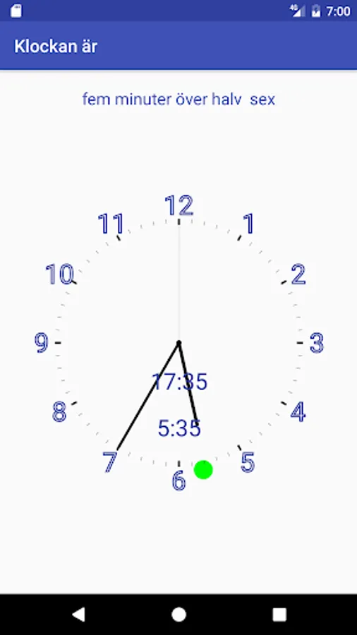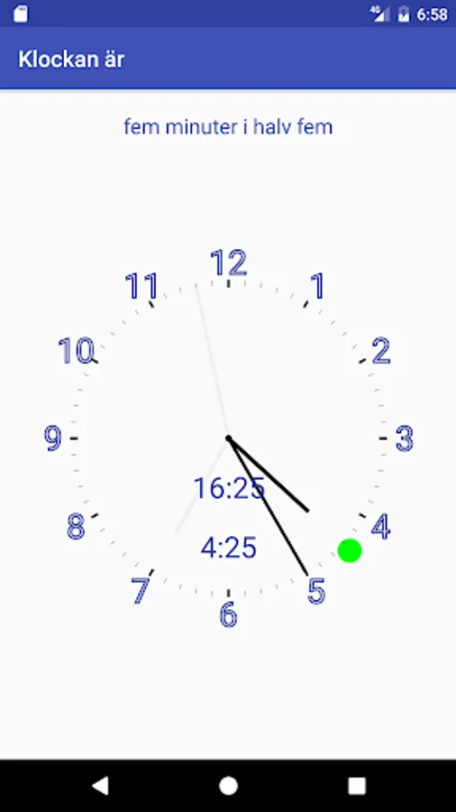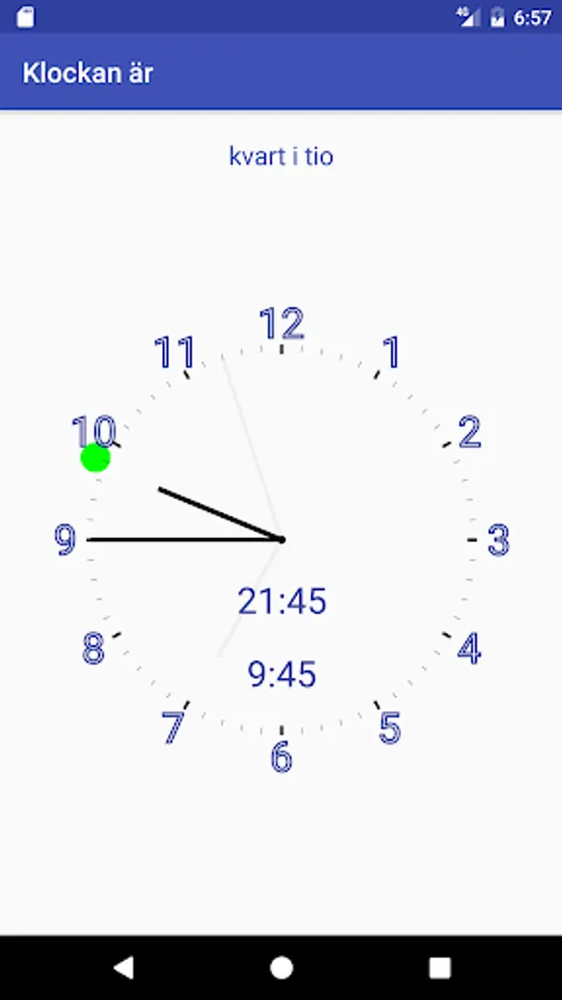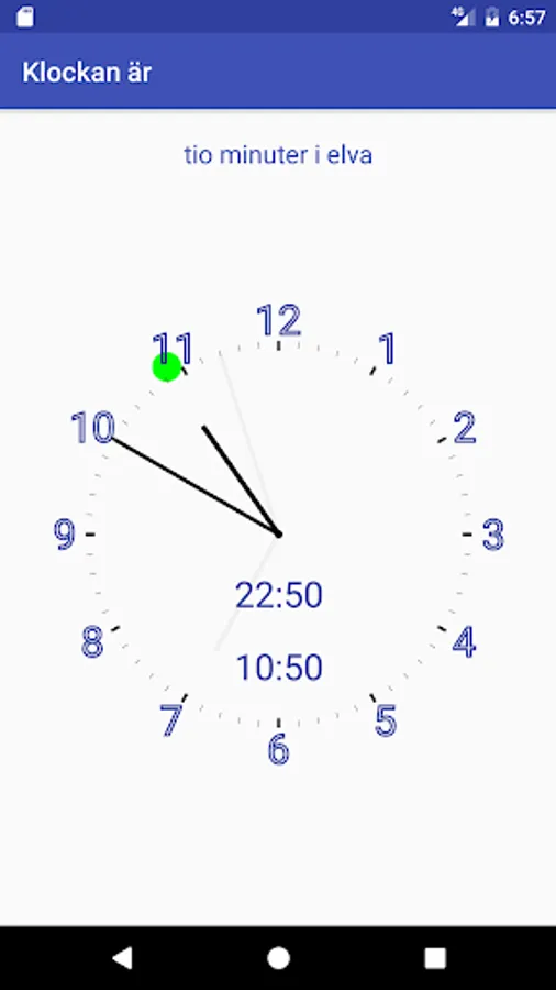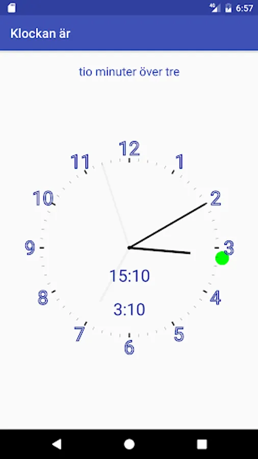 Drag hour show cursor around talskivan to set the clock. Get feedback what the time is. For example, "five minutes at half past ten," "quarter past one."