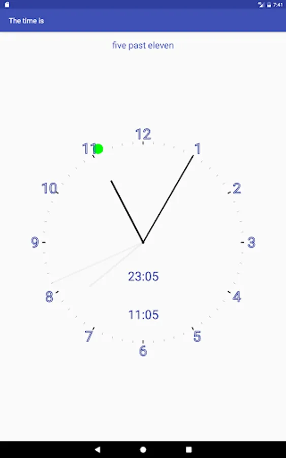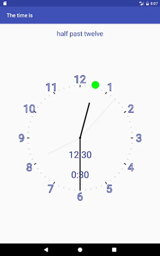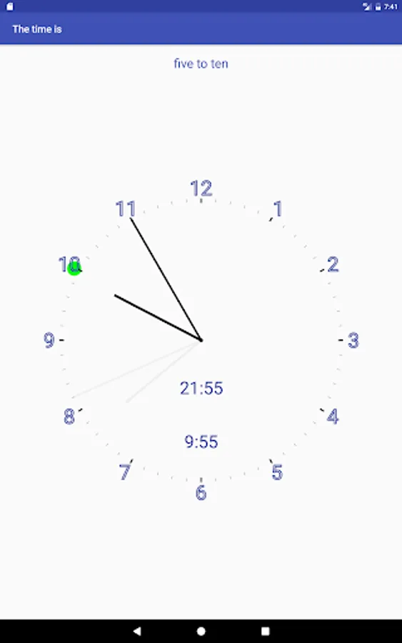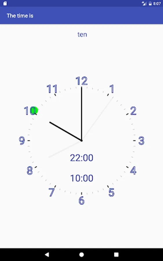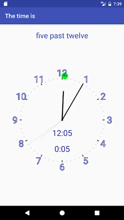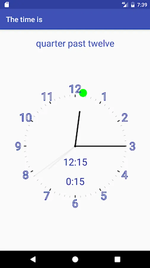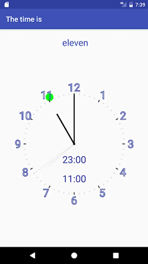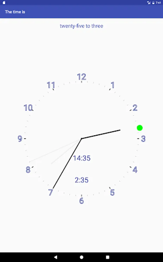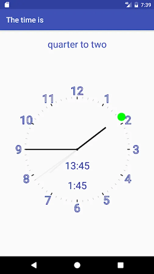 You drag the marker by the hour hand to set the time. The minute hand stops on 0, 5, 10 minutes and so on. You also see a digital display. When you release the marker the text pops up telling you what time it is. You must be able to read. Screenshots displays everything.