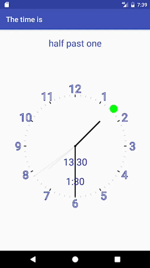 Drag the marker around the dial to set the clock. Get feedback what time it is. Eg: "ten past five", "quarter to two".