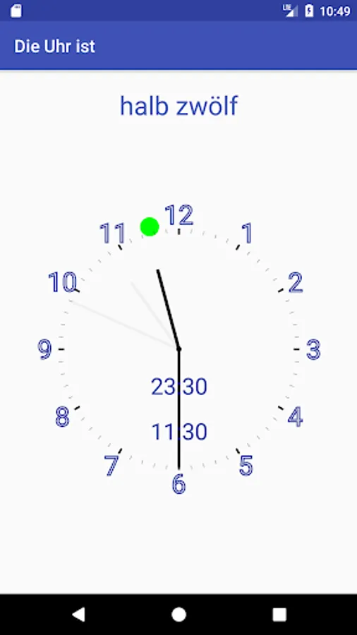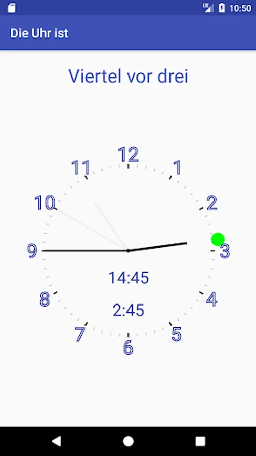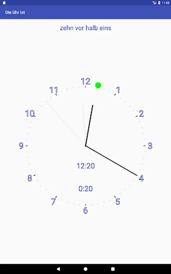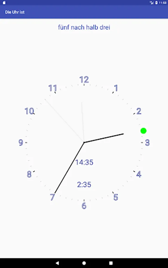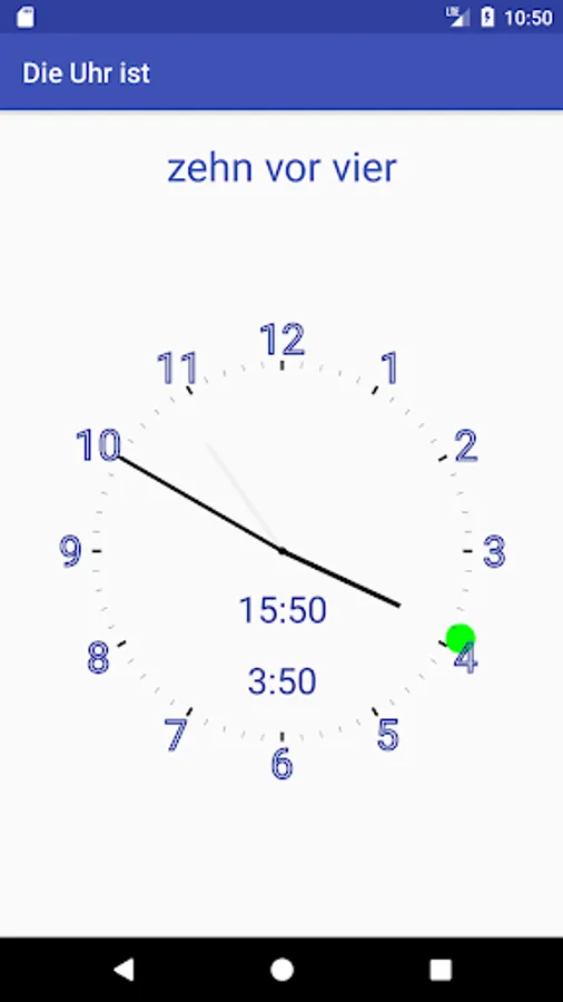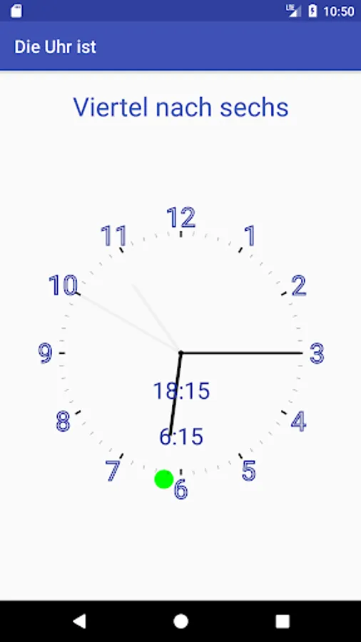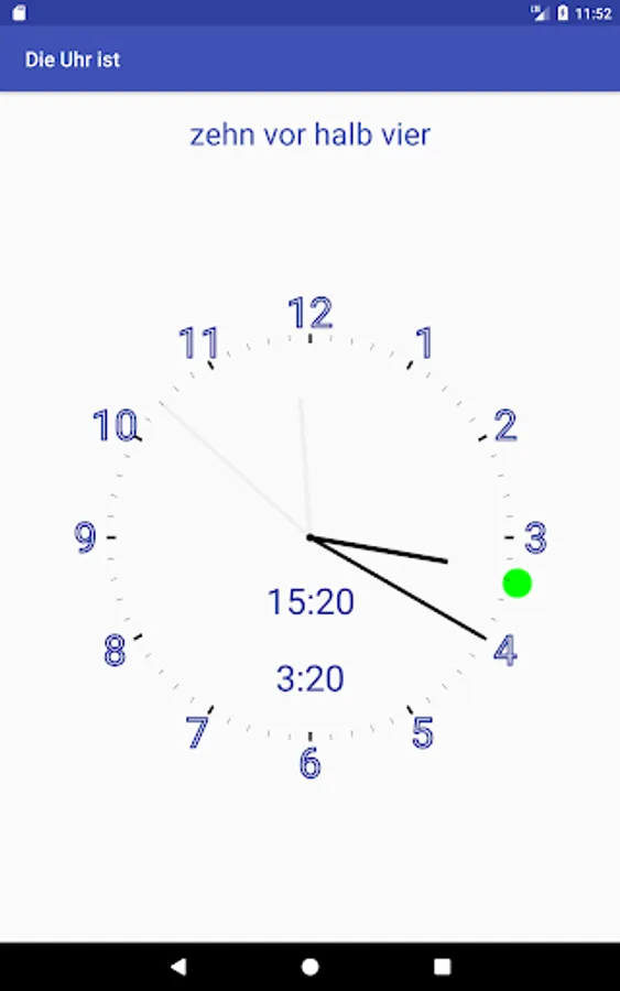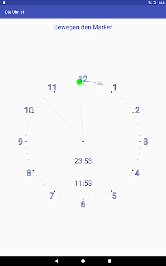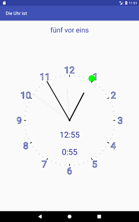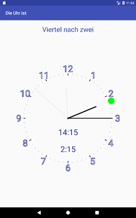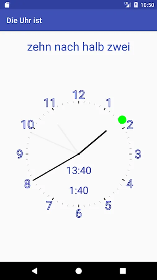 Move the hour hand in a circle on the number plate to make the watch. You can get a feedback on what time it is, for example, "Ten to one", "ten past eight." To change the time, you move the cursor to the hour hand. When you release the cursor, immersed text with the time. You must be able to read.