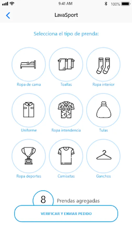 · Request a service in an orderly manner, by categories, clothes and states of your clothes