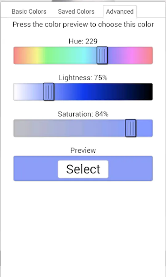 2. Return to the settings menu by touching the color wheel in the upper right corner.
