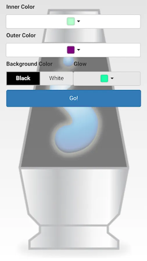 1. Choose your custom color, background color, and glow color push "Go!" and then tap and hold to split the lava bubbles!