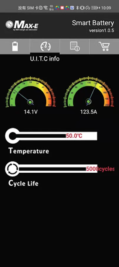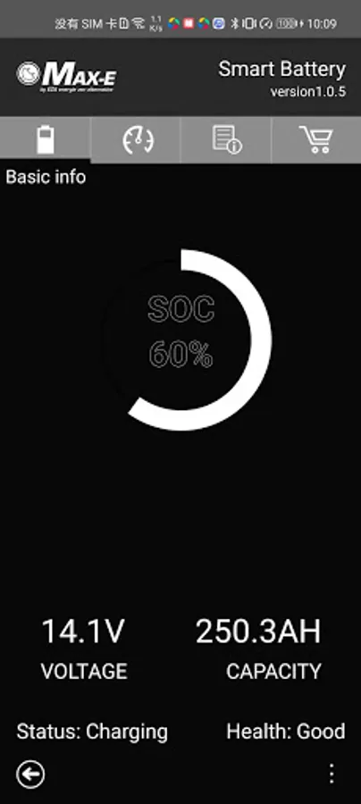 * Displays State Of Charge (SOC) percentage with circle graphic.