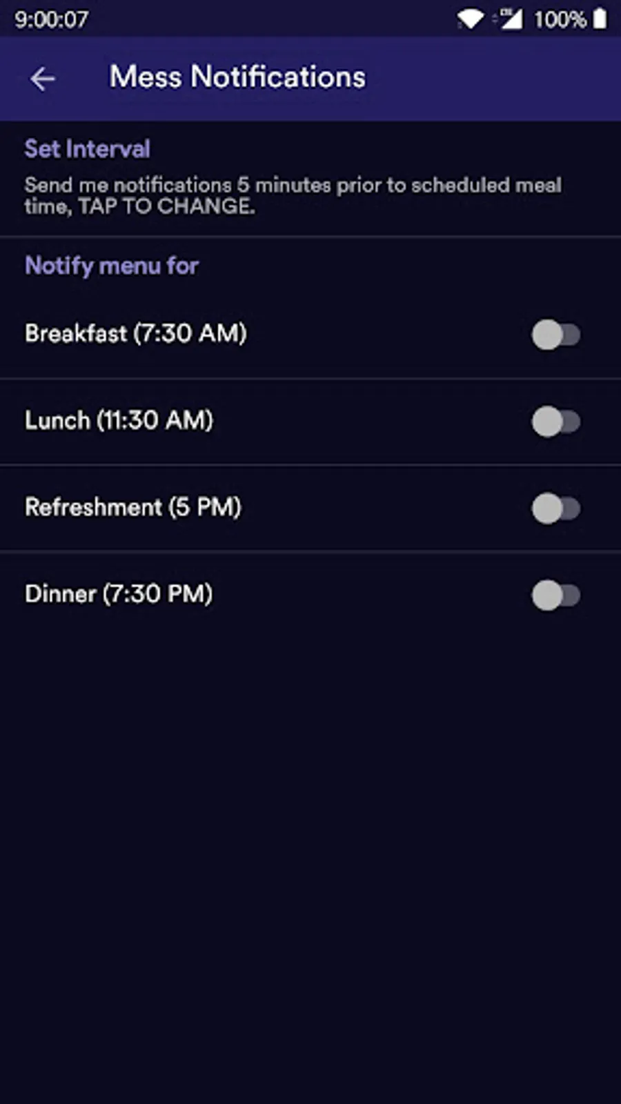 • Notifications for Food Menu - Get timely notifications for Mess's Food Menu