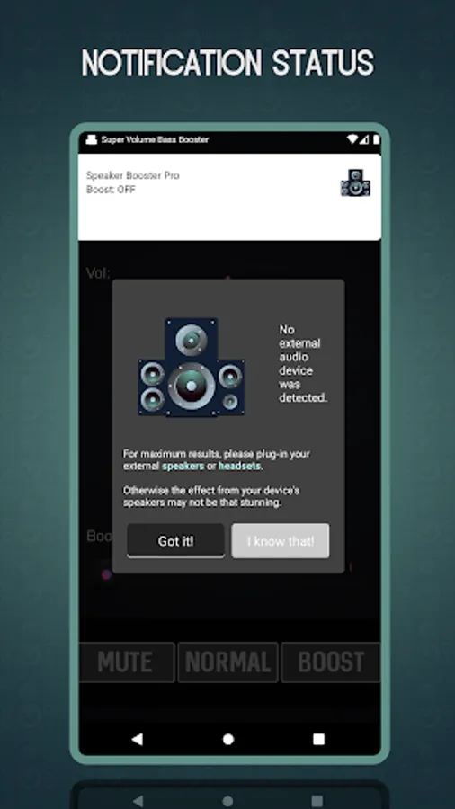 With our music booster app, you can easily boost all your phone sounds to a maximum value to get the best experiences while listening to your favorite music or simply to hear your phone while ringing even if you are far from it.