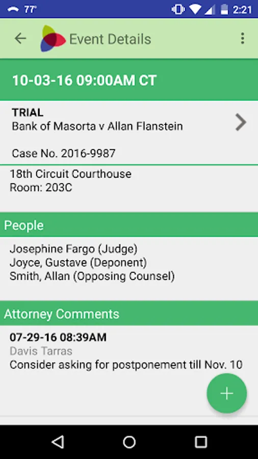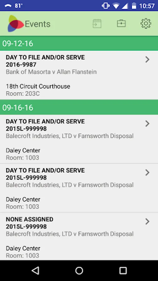 JuraLawyer is linked directly into JuraLaw, a national case, calendar and docket management system by Law Bulletin Publishing Company. Created especially for JuraLaw subscribers, JuraLawyer users are able to view lists of cases and upcoming events along with all the associated details. The JuraLawyer app makes it easy for attorneys to send notes about event outcomes and next dates directly to the JuraLaw system where docket professionals can manage and monitor them.
