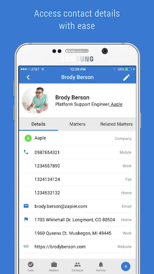 ● Manage contacts and matters