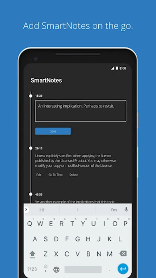 - Add SmartNotes, time stamped notes that let you jump back to the place in the course you took the note.