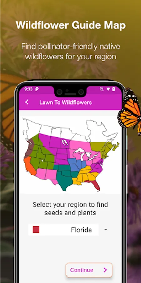 This app is designed to help you focus on the plant and pollinator species in your area. And once you master your area, you can start to learn about others, with information about all of the major regions in the US and lower Canada.