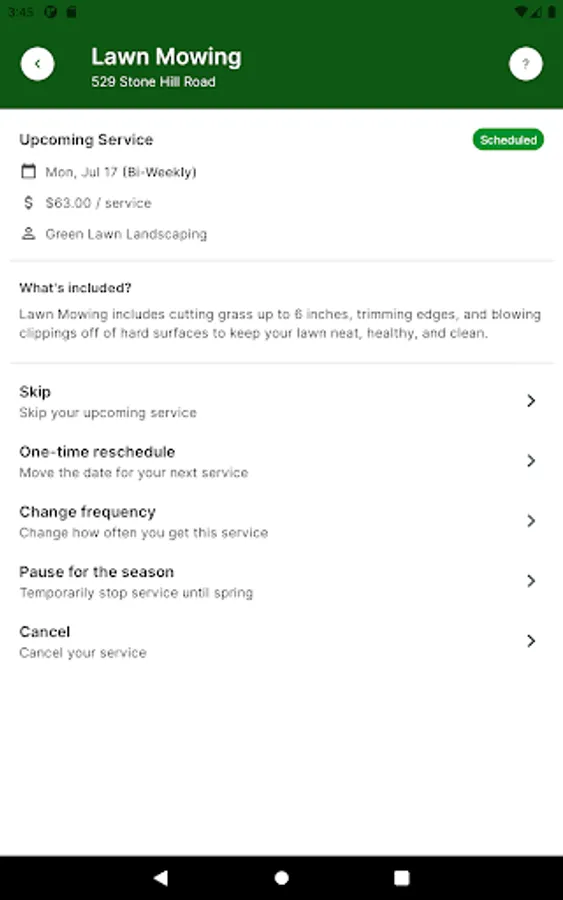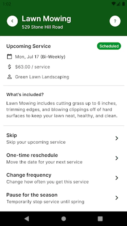 Lawn Love’s innovative platform connects you with top pros in your area who will take care of your lawn while you sit back and relax. Easily schedule lawn care services tailored to your needs without wasting time on research and tedious phone calls - Lawn Love streamlines the entire process. Your flexibility and peace of mind are our top priority, so you only pay once the job is done and you’re satisfied with the results. No more upfront payments or uncertainty.