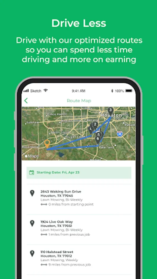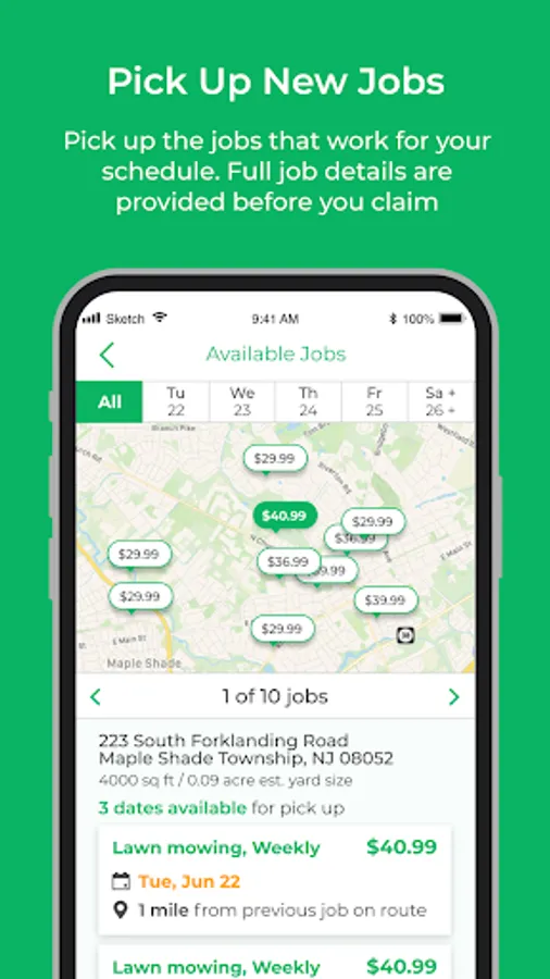 LawnStarter for Providers allows lawn care contractors to claim jobs, manage their schedules, and coordinate their crews. This app works in conjunction with LawnStarter's web platform, which allows lawn care companies to claim extra clients on their already existing routes.