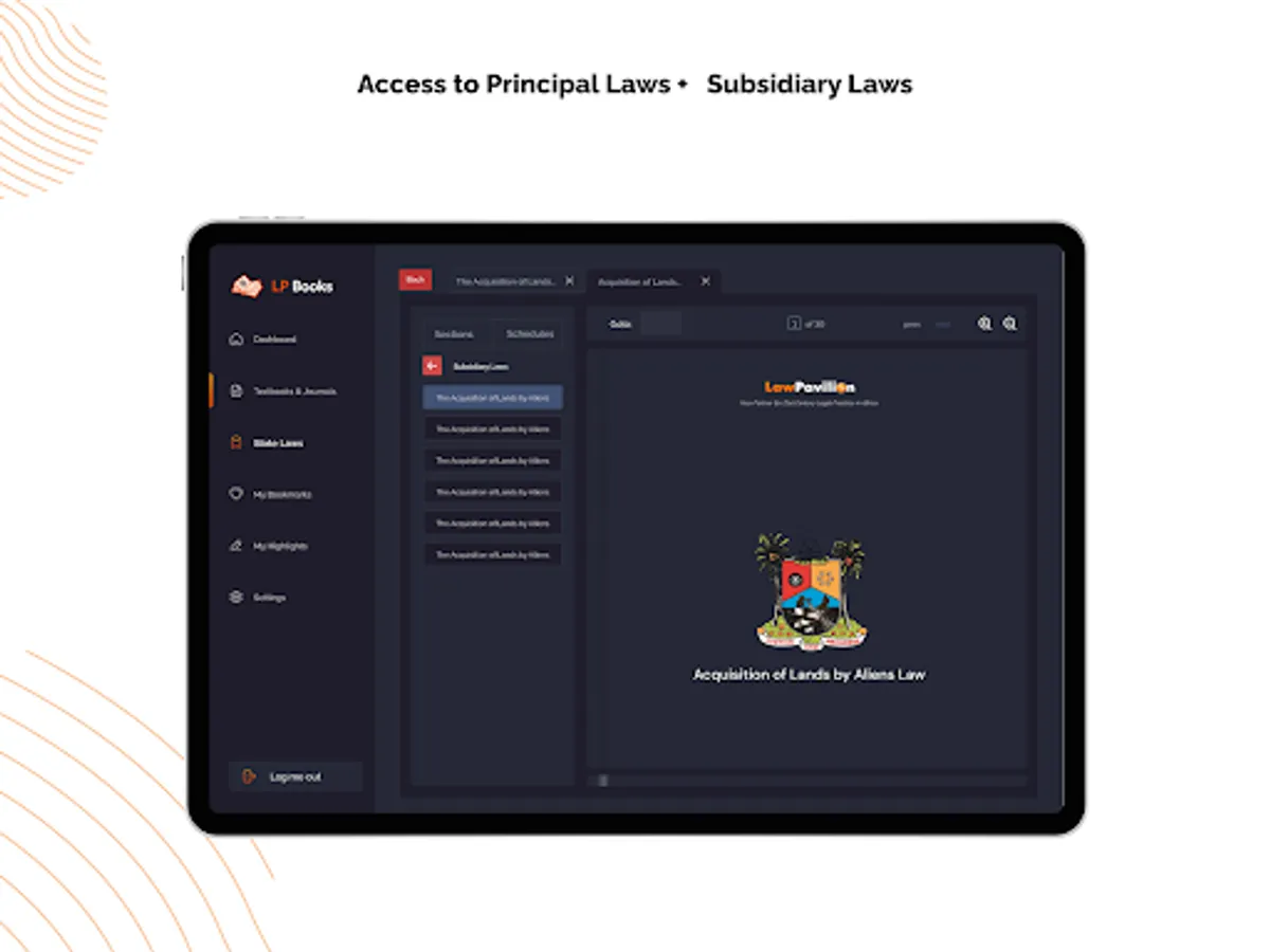 LP Books is a solution by LawPavilion that contains a collection of the writings of legal experts covering almost every topic related to law; and the Complete eLaws of States in Nigeria.