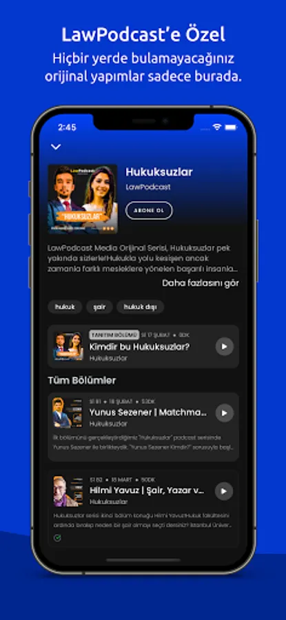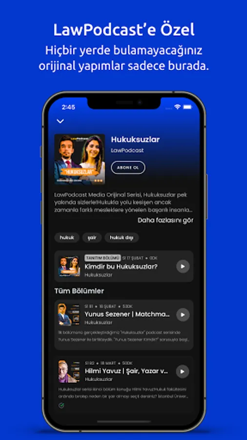 LawPodcast is a podcast application that brings together original productions and content prepared by experts on a single platform that you cannot find anywhere else.