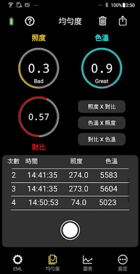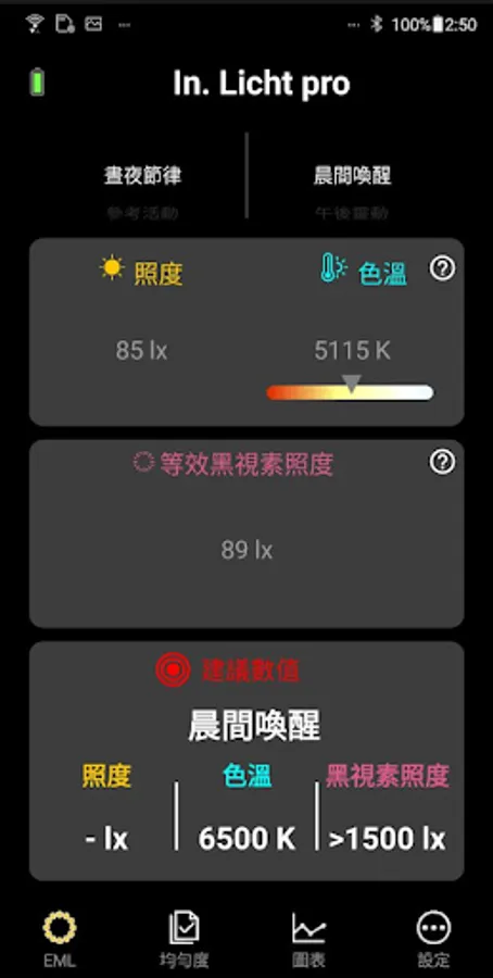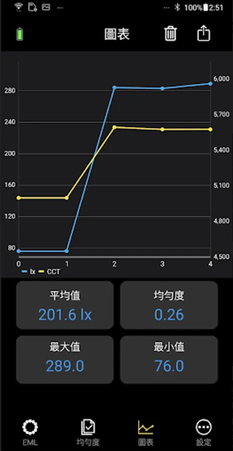 The measurement includes 5 key indexes: illuminance(Lux), correlated color temperature(CCT), contrast, uniformity and Equivalent Melanopic Lux (EML).