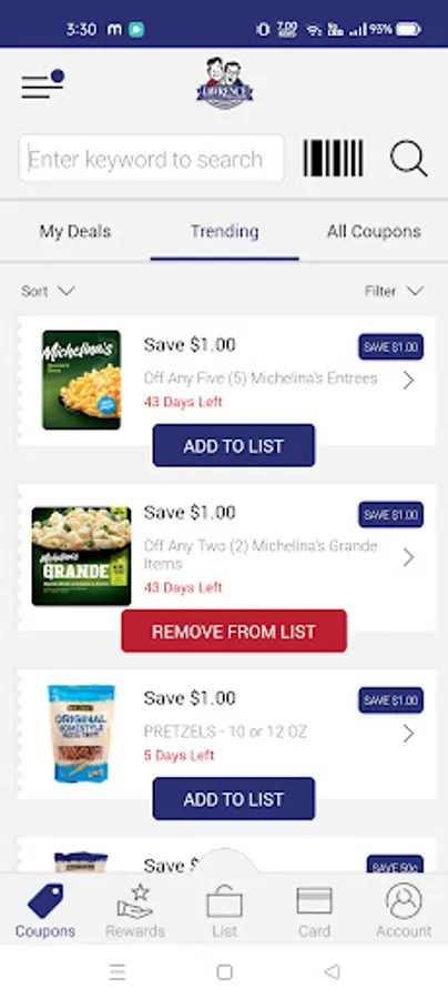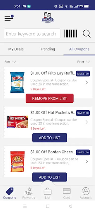 2. Adding coupons and specials to your list, and