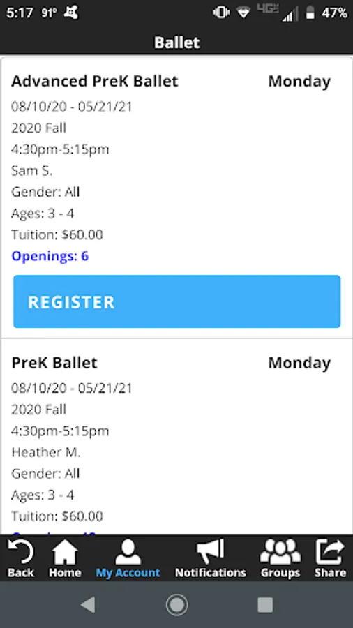 - Have a class in mind? Search by program, level, day, and time. You can register or even put yourself on a wait list.