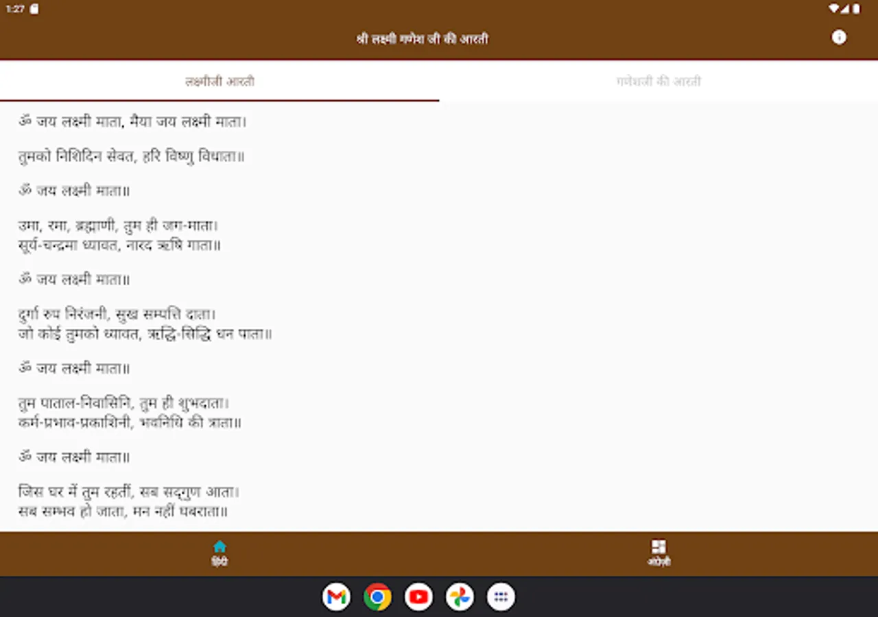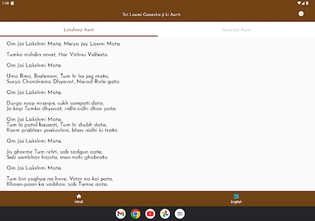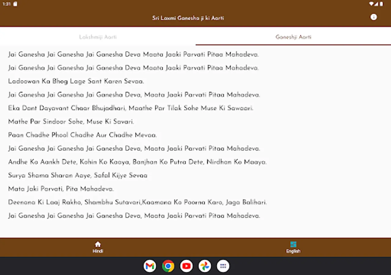 Shri Laxmi Ganesha Aarti app , very clean and visible fonts without ad. It is useful on Diwali or Deepawali pooja especially Aarti. An app lifting of spiritual darkness.