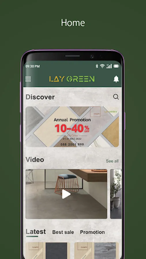 Lay Green is the first Mobile App developed exclusively for tiles and sanitary ware sector. It offers a wide range of services to its subscribers. It features a smart Tiles and Sanitary Visualizer feature that enables you to view tiles and Sanitary all through the surface it's suited for. Customers will be able to see what best suits their needs via this feature. It also includes information of any promotional campaigns.