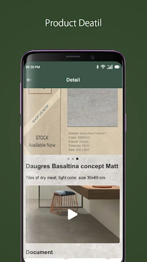 The Product categories which are listed on the application are porcelain tiles such as marble tiles, stone tiles, contemporary tiles that consist of many series develop UpToDate and luxurious sanitary ware included Kitchen Sink, Bathroom Cabinet, Simple Bathtub & Massage Bathtub, Simple Toilet & Smart Toilet, Washbasin, Simple Urinal & Auto Urinal, Simple Shower Mixer & Luxury Shower Mixer, Hands Dryer, and Tisue Holder, and others.