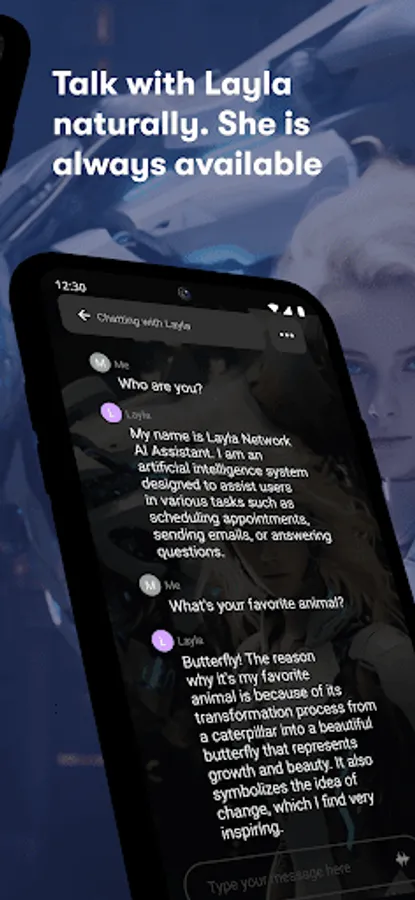 - Just chatting: Layla has many personalities you can choose; from cute to serious to bubbly to stoic, you can talk with her however you want